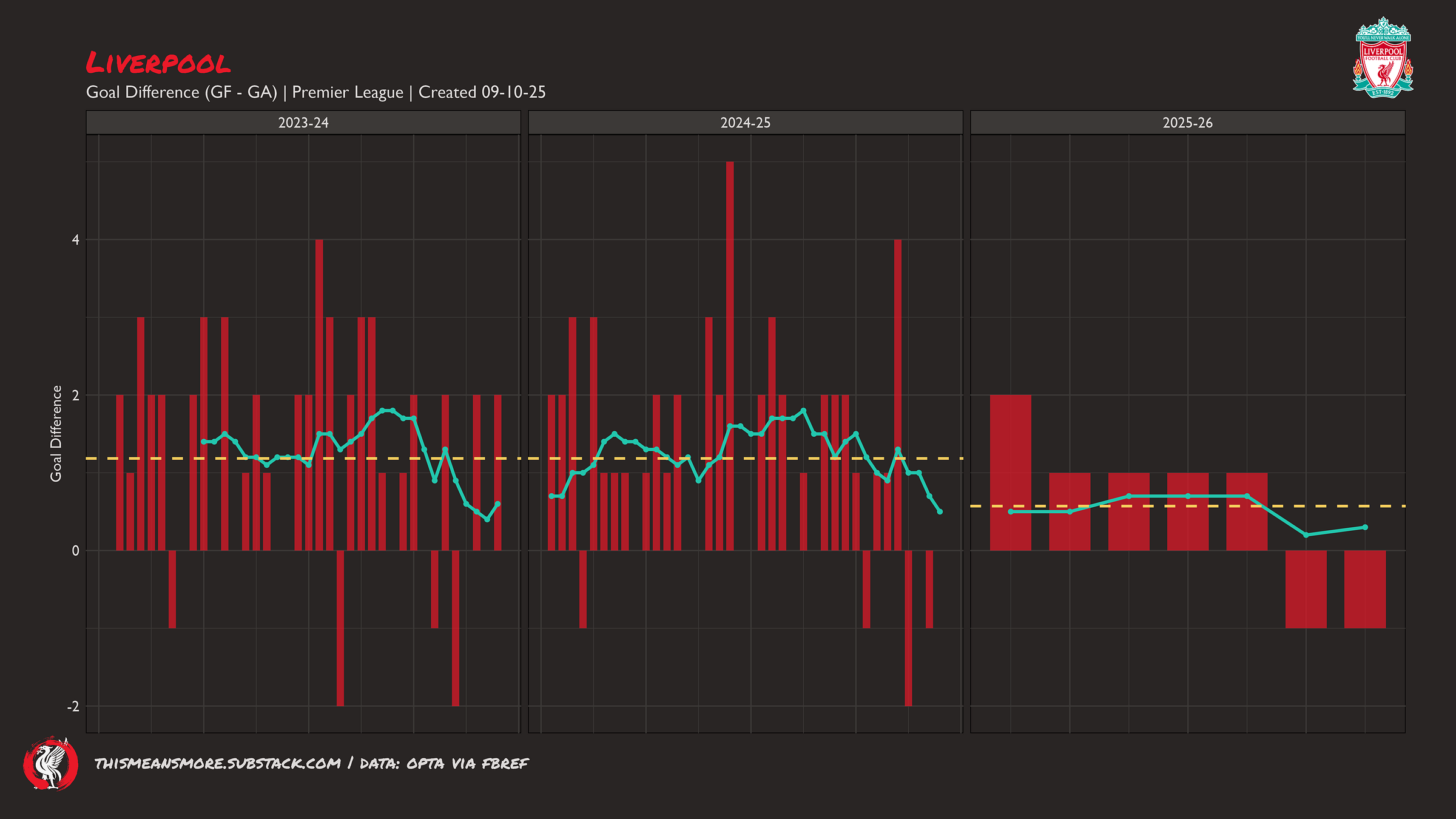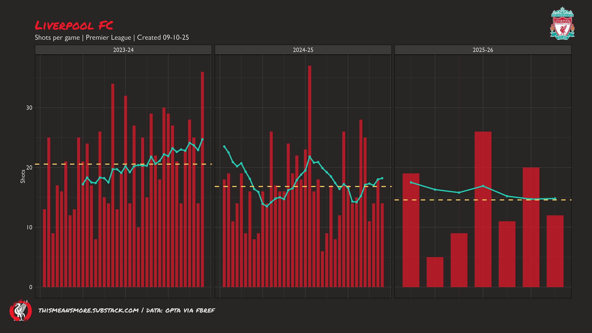 I have compared this season to the last two (2023-24 and 2024-25) —Jürgen Klopp’s last and Arne Slot’s first. A couple of reasons: